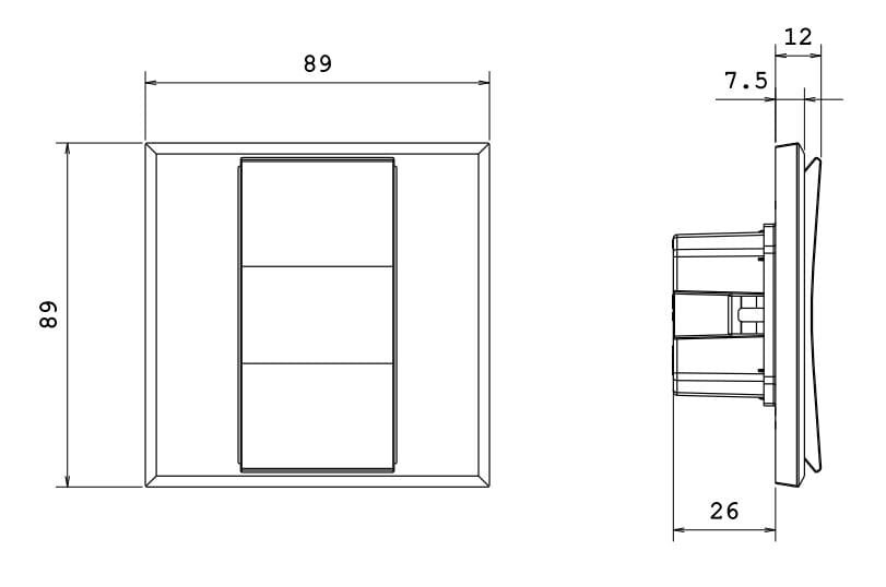 - Montaggio incassato a parete su scatola rotonda o quadrata