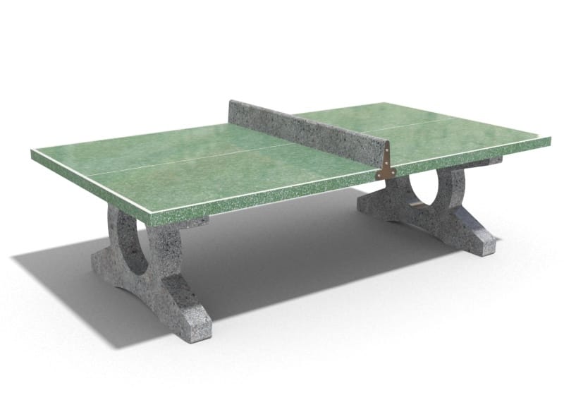 Il tavolo da ping pong cod. 89 è realizzato interamente in calcestruzzo fibrorinforzato ad alte prestazioni (HPC) e inerti naturali in marmo o pietre di granito in diverse colorazioni. Il tavolo da ping pong è di dimensioni standard, il piano di gioco è disponibile nei colori blu o verde ed è finemente lucidato. Tutte le superfici in calcestruzzo hanno un rivestimento protettivo che rende il prodotto ancora più resistente alle intemperie e riduce la deposizione di sporco. Gli elementi metallici utilizzati per fissare il piano del tavolo alle gambe sono zincati e verniciati a polvere, tutti gli altri componenti di collegamento sono realizzati in acciaio inossidabile. Tavolo da ping-pong adatto a qualsiasi casa o giardino, elegante soluzione esterna per aree campeggio, resort, villaggi turistici, campi sportivi, spiagge e hotel e diverse aree urbane come parchi, scuole, campi da gioco.