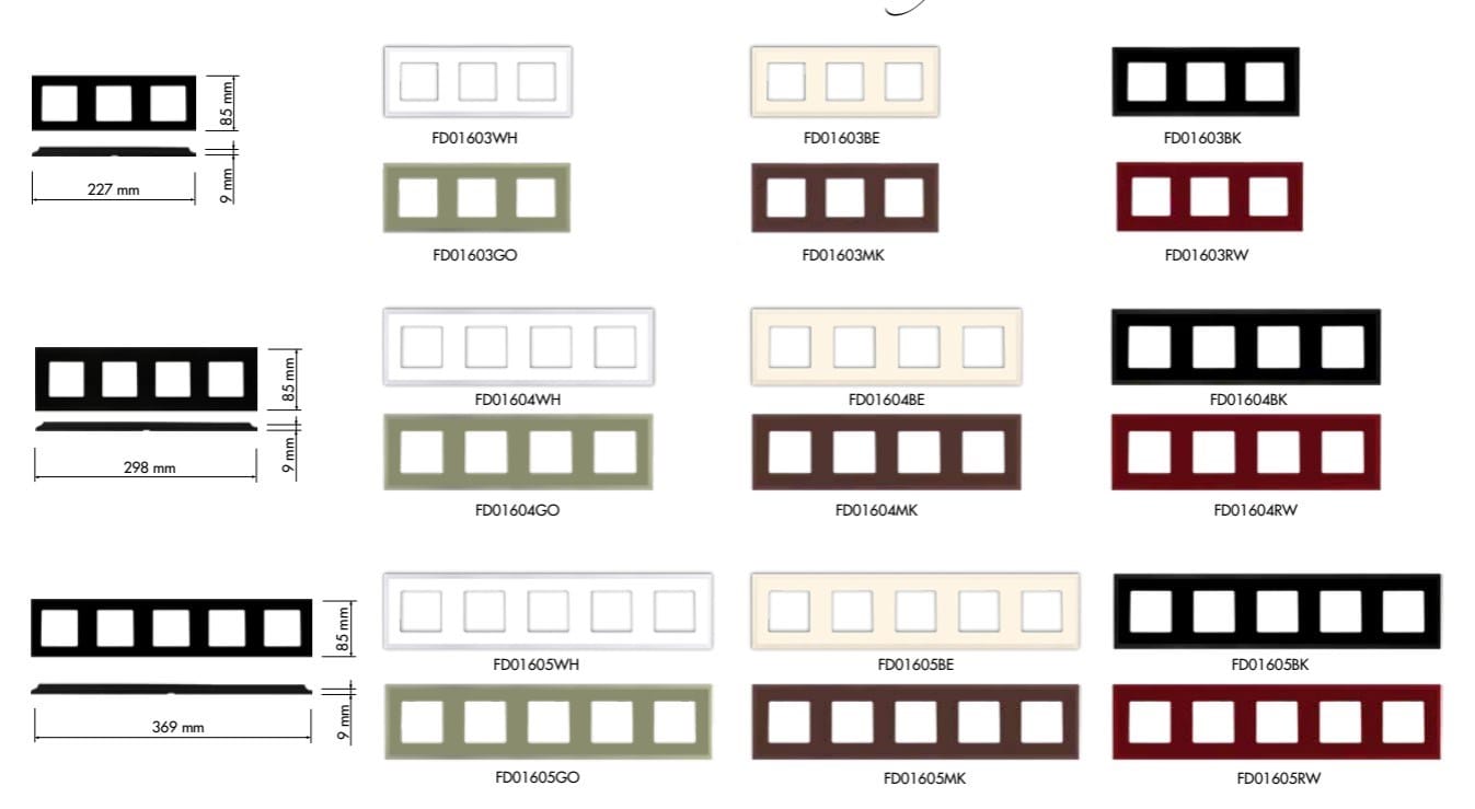 Le nuove cornici possono essere combinate con tutti i meccanismi elettrici di Fede, come dimmer e interruttori a levetta, sia in metallo che con un tocco di fabbrica, creati per spazi di tipo loft.