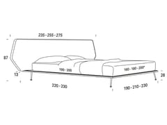Il letto Taipei è disponibile in tre larghezze per raccogliere quindi tre dimensioni di materasso L.160 / 180 / 200 cm abbinabili a una doppia profondità a scelta tra P. 190 / 200 cm.