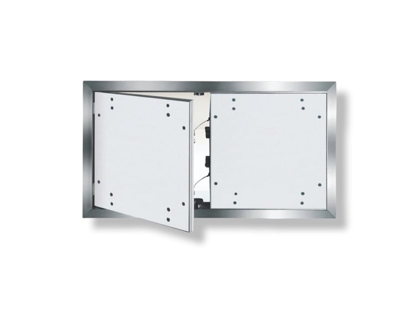 La botola d'ispezione è composta da profili in alluminio con lastra di gesso rivestito impregnato idrorepellente da 12,5 mm e da due o più chiusure a scatto.