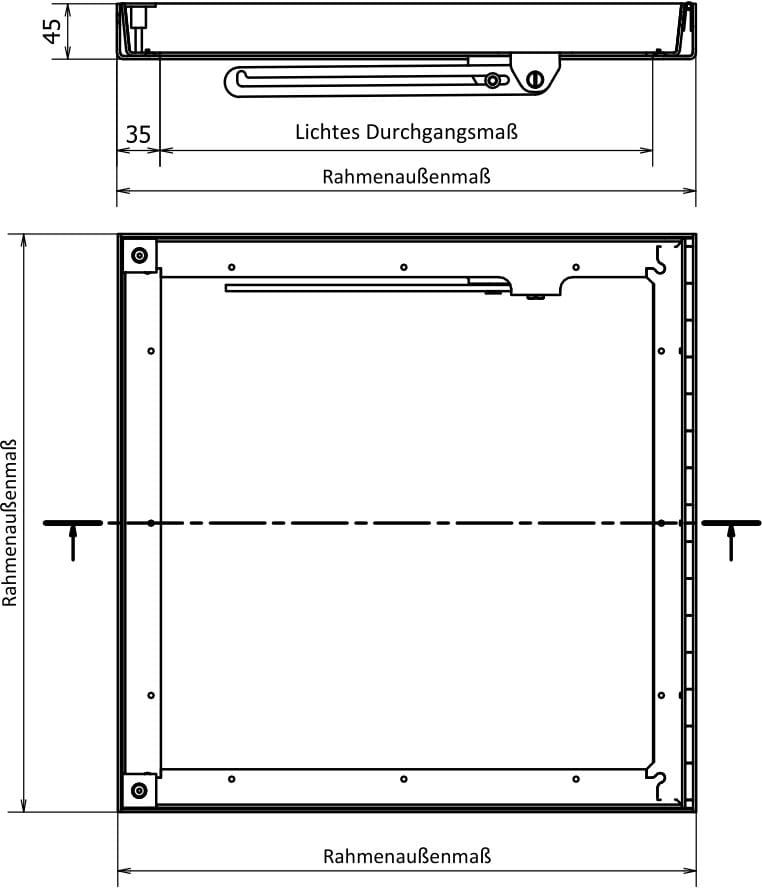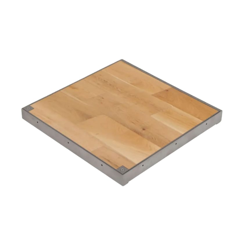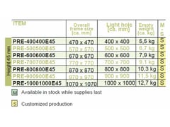 Il chiusino a pavimento Serie 4500 è realizzato con acciaio inox di 2,5 mm. La profondità della vasca è di 40 mm e l'altezza di installazione è di soli 45 mm. Il telaio viene fissato tramite gettata a livello del pavimento.