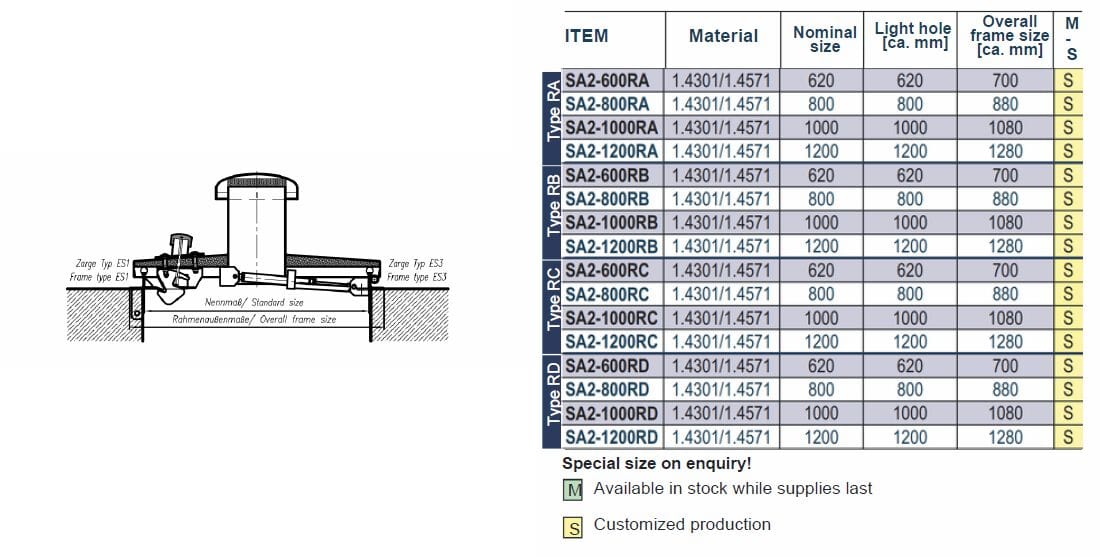 Il chiusino sistema SA2 è formato da un coperchio in robusto acciaio inox con rialzo centrale e da un dispositivo di bloccaggio interno per evitare la chiusura accidentale. Tutti i chiusini hanno sul telaio una guarnizione perimetrale sostituibile e resistente ad agenti atmosferici.