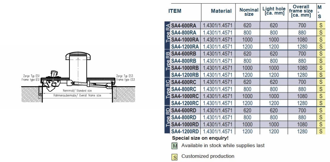 Il chiusino sistema SA4 è formato da un coperchio in robusto acciaio inox con rialzo centrale e da un dispositivo di bloccaggio interno per evitare la chiusura accidentale. Tutti i chiusini hanno sul telaio una guarnizione perimetrale sostituibile e resistente ad agenti atmosferici.