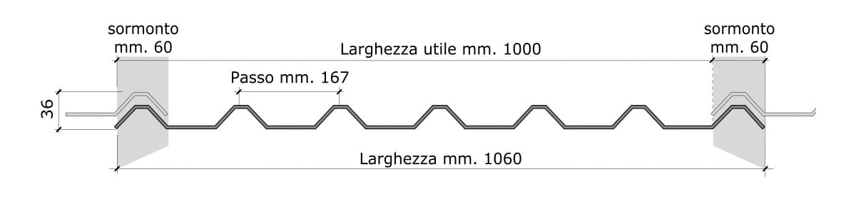 La lastra Greca Grigio Scuro presenta un regolare profilo coestruso di forma trapezoidale ed è particolarmente adatto per le coperture industriali di tetti a falda piana, a falda curva (con raggio uguale o maggiore a mt. 5) o per il tamponamento verticale di qualsiasi edificio o capannone. Il prodotto è ideale per la copertura di capannoni industriali, magazzini ed hangar. La lastra può essere indifferentemente posata sia da destra verso sinistra che da sinistra verso destra. La posa della lastra avviene utilizzando accessori per fissaggio dedicati, quali le viti per legno o metallo, i cappellotti con o’ring (che avvolgono il profilo della lastra preservando la tenuta d’acqua con l’apposita guarnizione in corrispondenza del foro di passaggio vite) e i coprivite (che proteggono la testa della vite dagli agenti atmosferici).