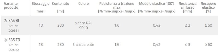 Buona resistenza agli agenti chimici e ai raggi UV. In condizioni di irraggiamento estremo SAS potrebbe mutare colorazione.
