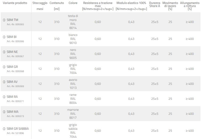 Marcato CE per sigillatura di facciate (lato interno e/o esterno, anche per clima freddo), vetrate (anche per clima freddo) e giunti per impieghi sanitari (solo SBM RA).