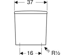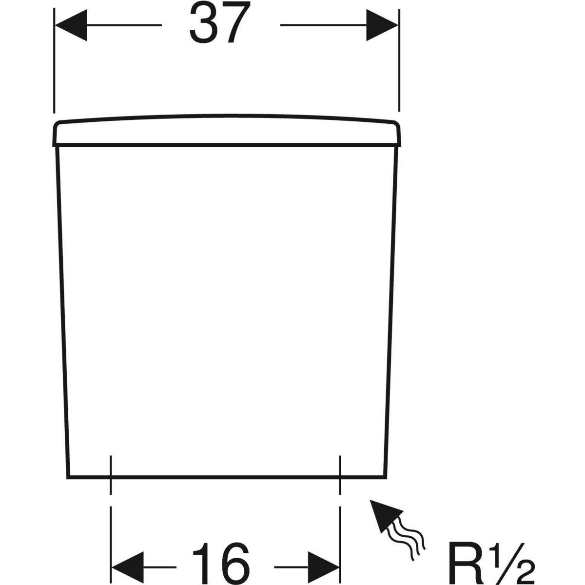 Cassetta di risciacquo esterna monoblocco Geberit Selnova Square, risciacquo a due quantità, allacciamento idrico inferiore.