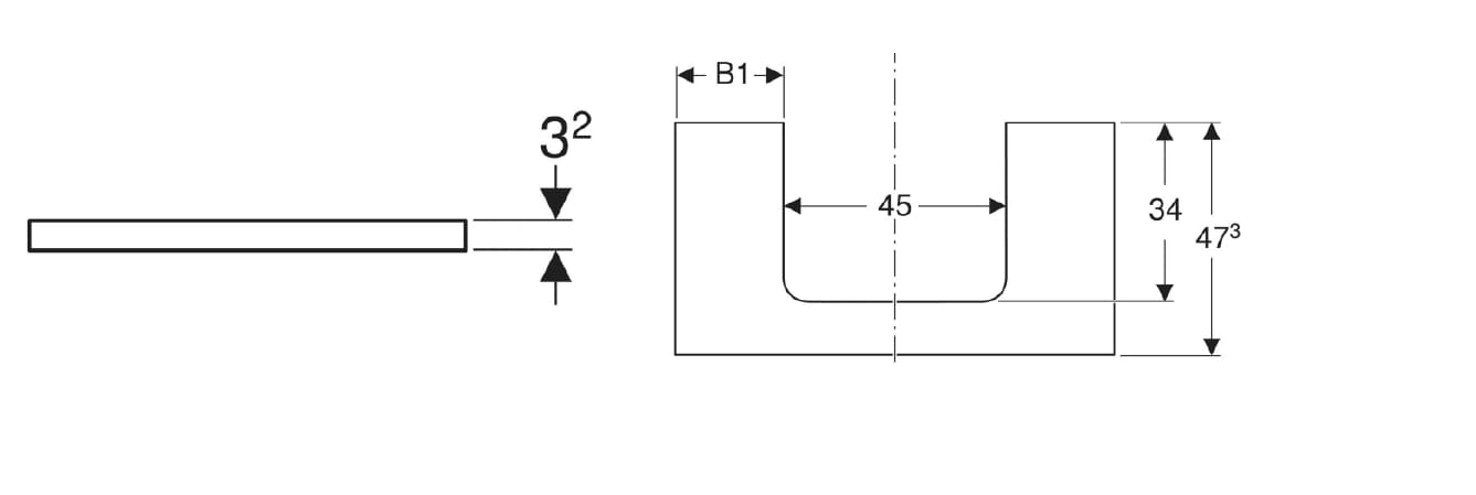 ONE è un piano per lavabo con apertura, per lavabo da appoggio rettangolare. Per il montaggio su un mobile sottolavabo Geberit ONE, Acanto, iCon o su un supporto portasalviette