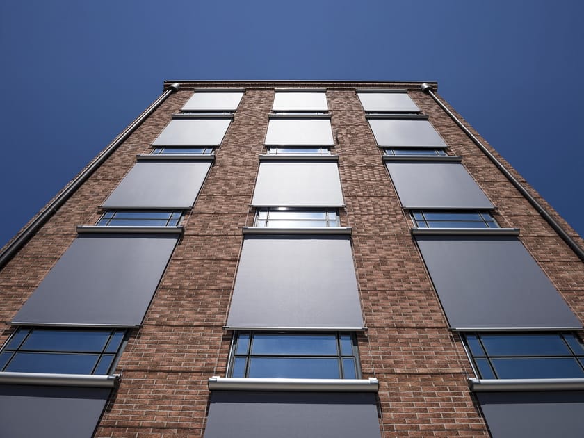 TOLO: Tenda a caduta motorizzata con cassonetto in alluminio verniciato a polveri che contiene e protegge il telo. L’uscita posteriore del telo permette una maggiore aderenza alla facciata su cui viene fissata. La cura dei dettagli e il design esclusivo ne evidenziano l’armonia e le simmetrie. Tutti i componenti tecnici sono nascosti e nessuna vite è a vista. Il cassonetto può essere fissato a parete o a soffitto e il telo è tenuto perfettamente in tensione dal frontale.