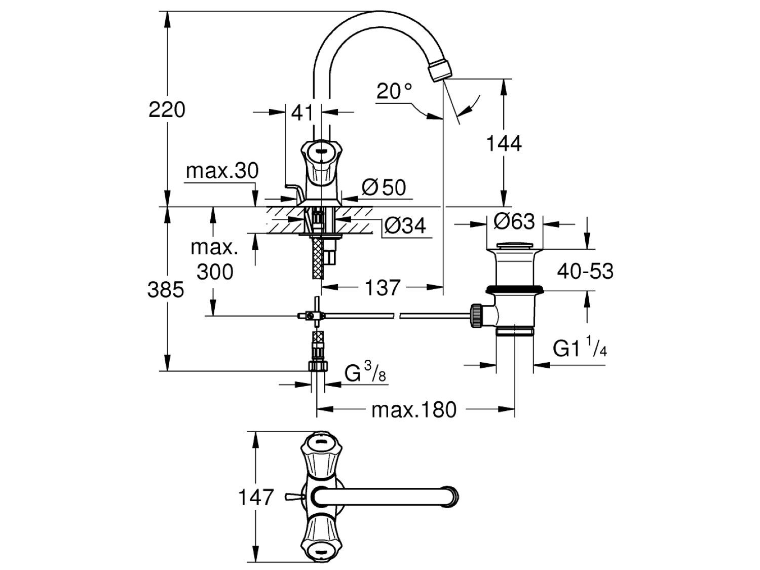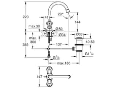 Miscelatore monoforo per lavabo Adria maniglie in metallo, vitone GROHE Long-Life, bocca alta girevole e scarico a saltarello 1 1/4".