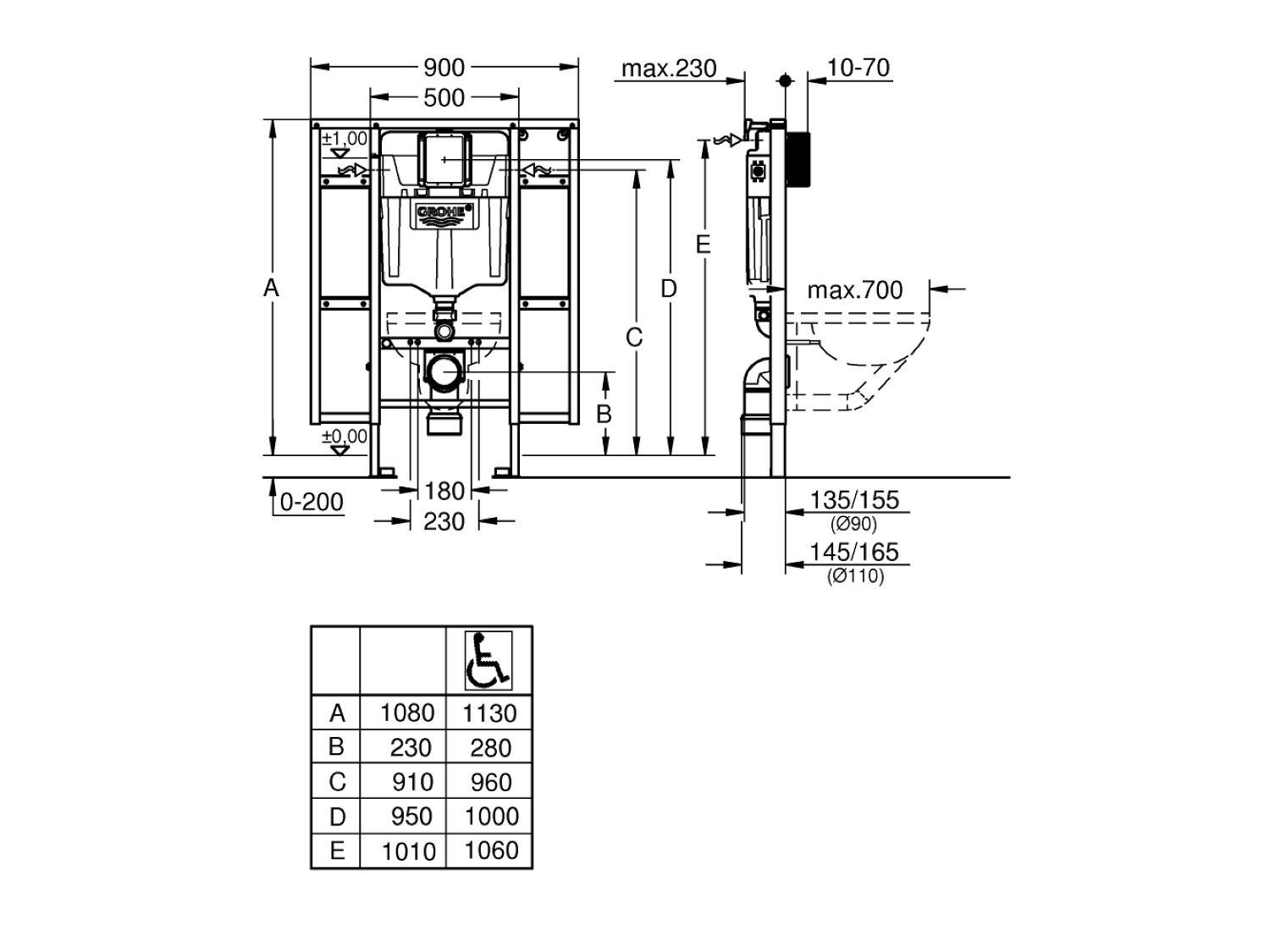 Grohe RAPID SL Cassetta di scarico / Supporto per sanitari per disabili