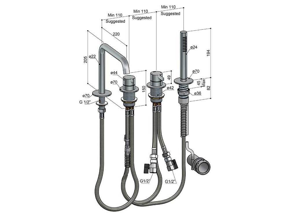 AC073 è un miscelatore per bordo vasca, con bocca d'erogazione girevole.