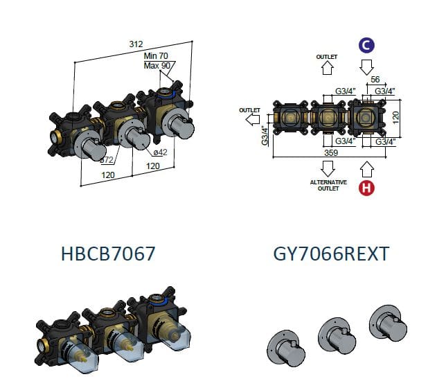 Guy è un miscelatore termostatico da incasso, con 2 rubinetti d'arresto.