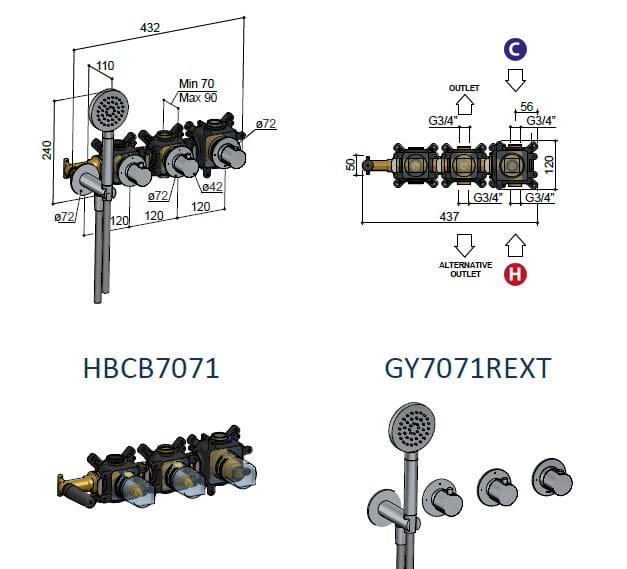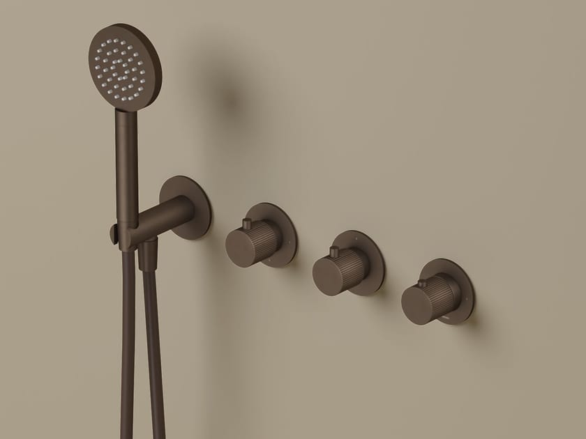 Guy è un Termostatico da incasso, con 2 rubinetti da incasso e doccetta.