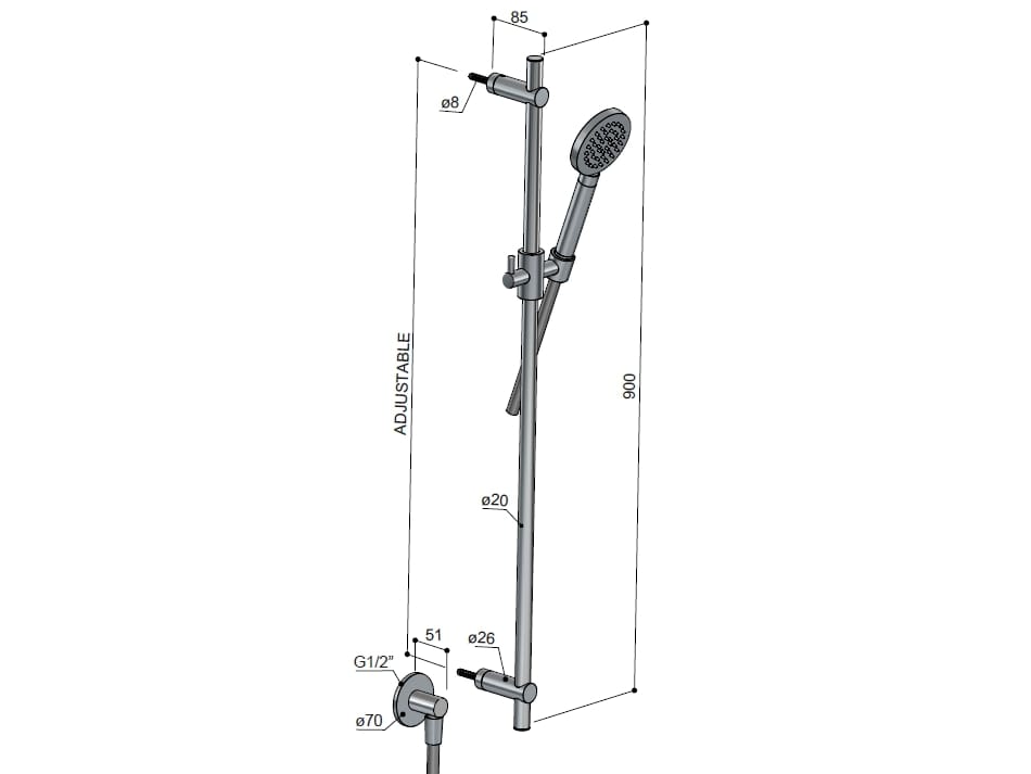 Guy è un'asta saliscendi con flessibile, doccetta ø 9,4 cm e presa d’acqua.
