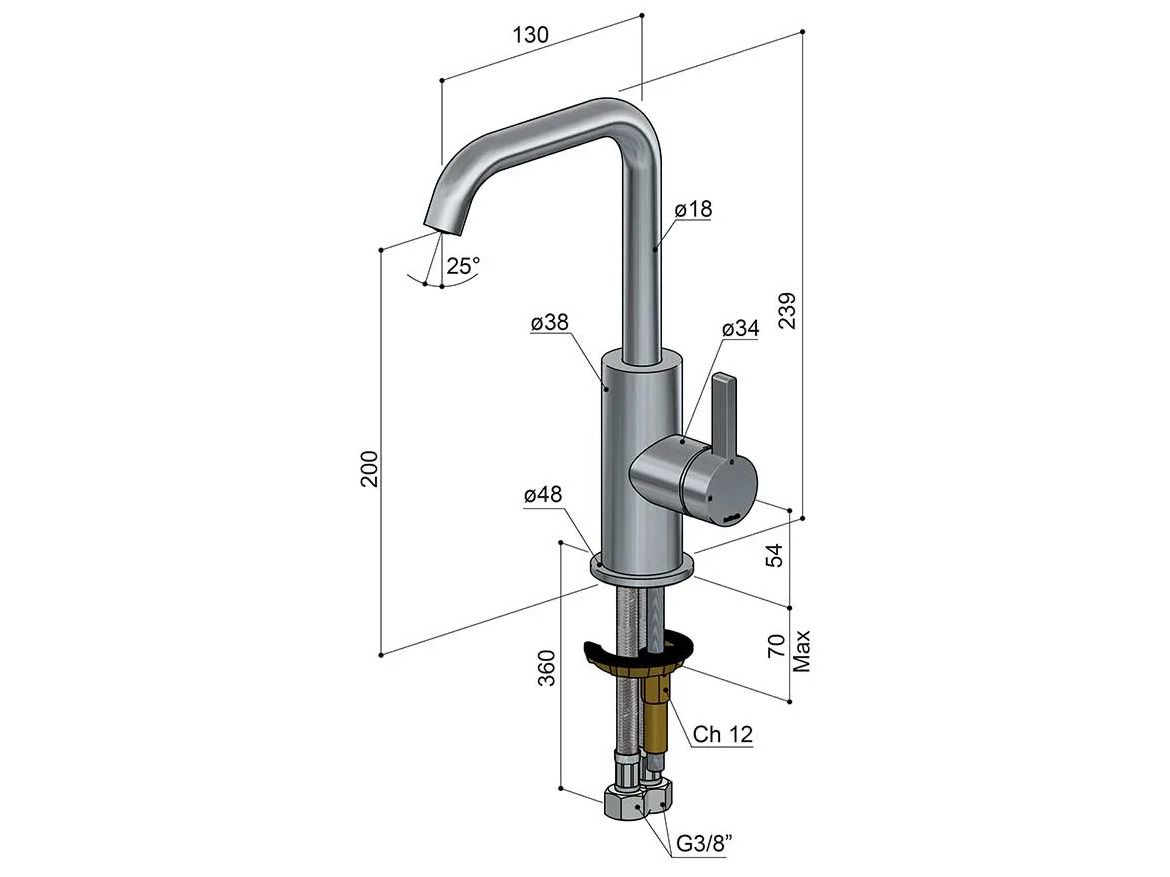 AC004 è un miscelatore da lavabo, con bocca girevole.