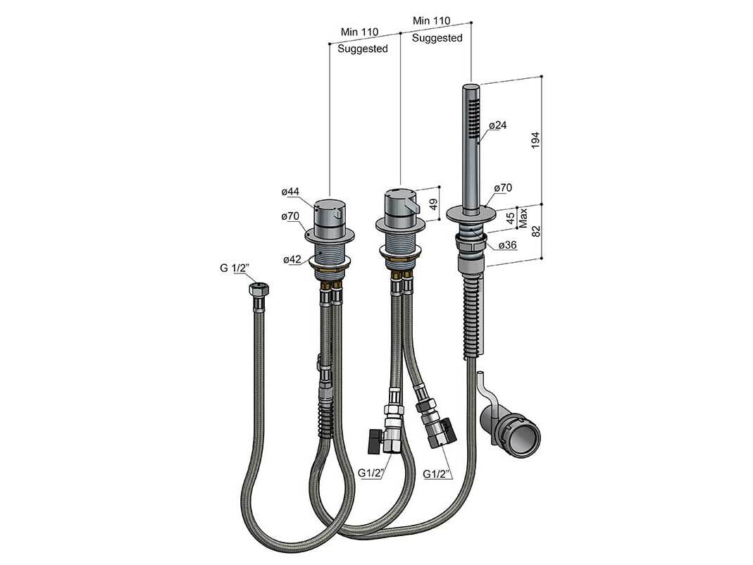 AC075 è un miscelatore per bordo vasca, senza bocca d'erogazione.