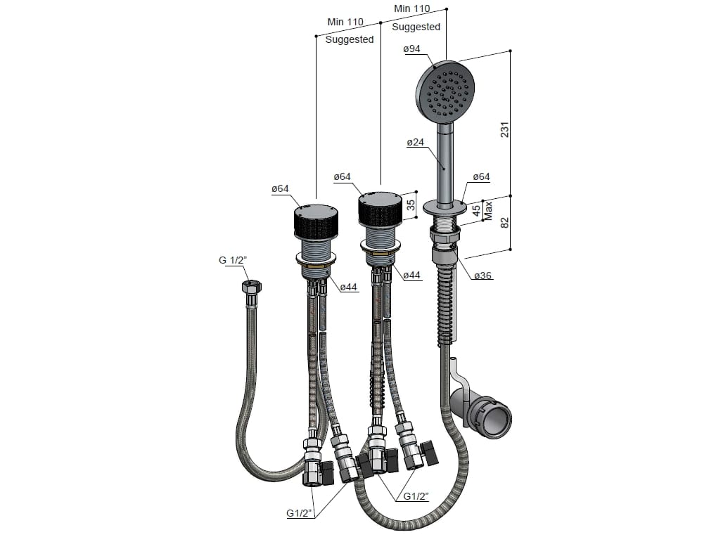 Guy è un set per bordo vasca, con 2 miscelatori, bocca e doccetta.