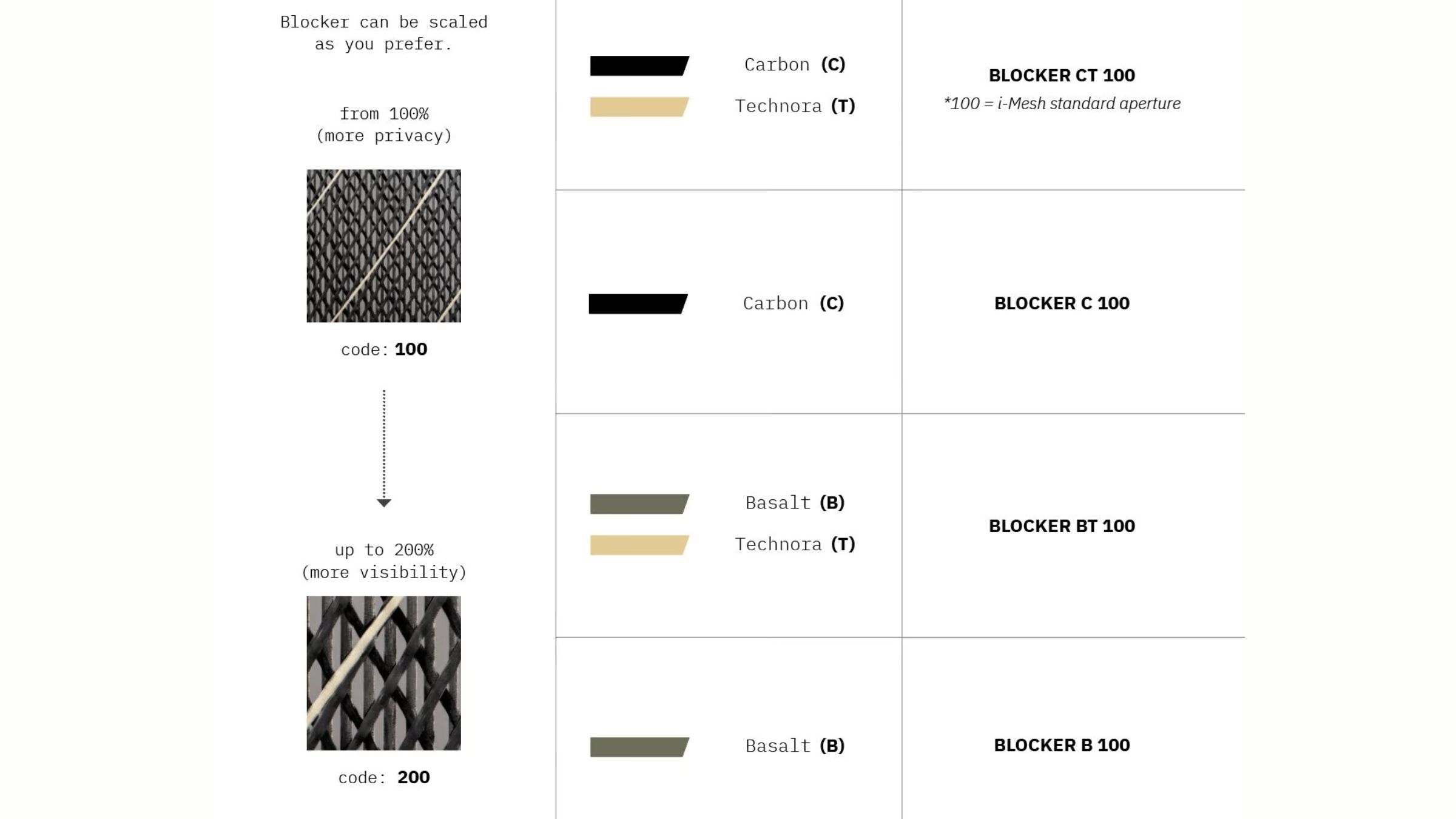 BLOCKER è un tessuto tecnico personalizzabile, per interni ed esterni. Per chi è alla ricerca del massimo della privacy, solitamente realizzato in fibra di carbonio, è caratterizzato da una bassa permeabilità.