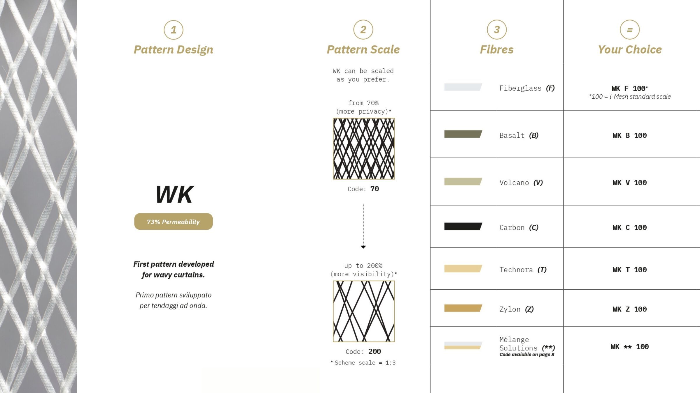 i-Mesh è prodotto soltanto in pannelli realizzati su misura, personalizzabili e pronti per essere installati. Crea il tessuto che preferisci in tre semplici passaggi: