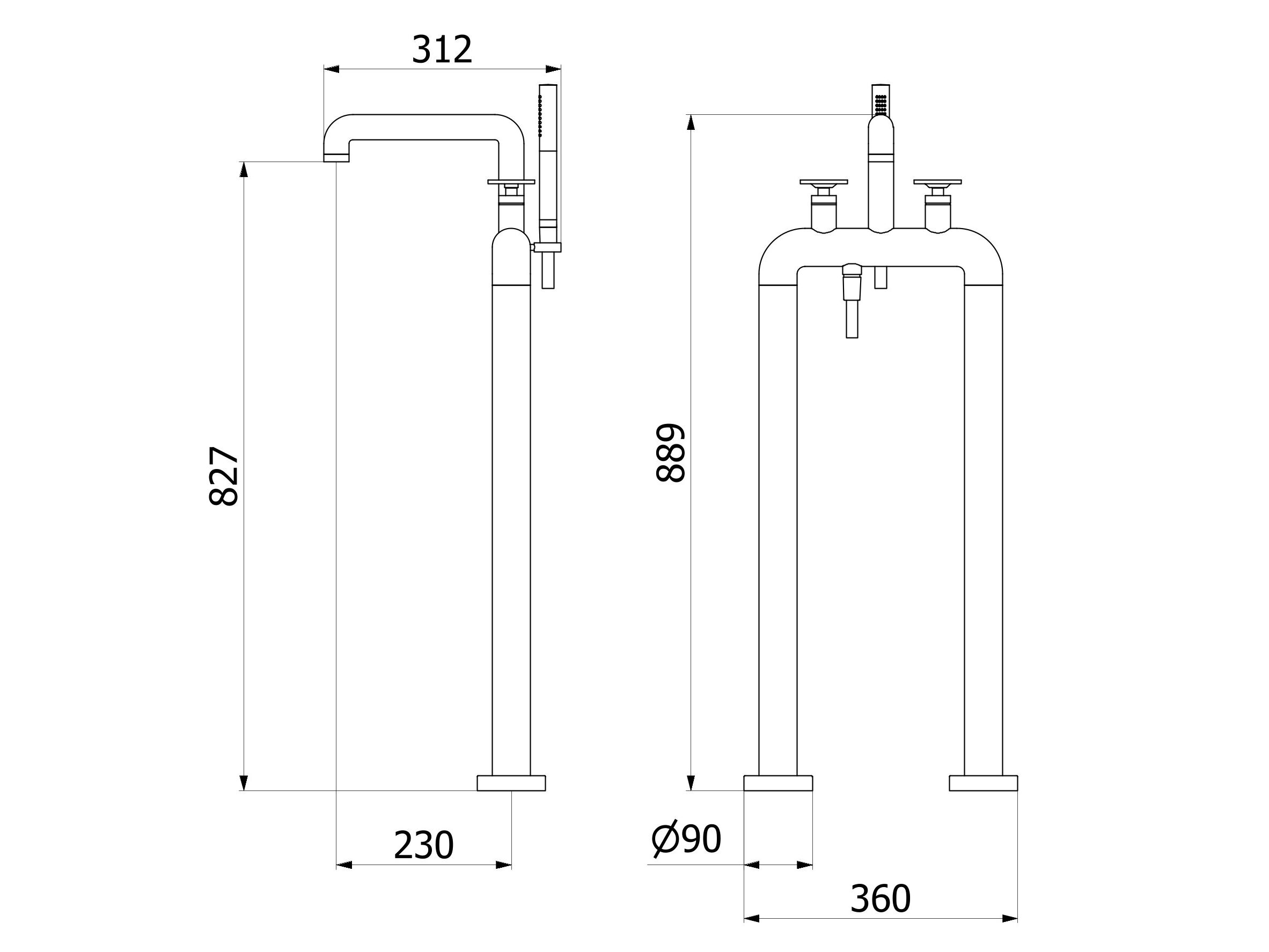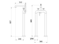 Bold Round B1700 è un rubinetto bordo vasca da terra a doppia colonna con kit doccia.