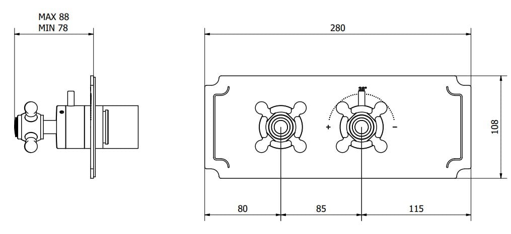 Aqua - 1 way EUA125 è un kit piastra e maniglie termostatico 1 via orizzontale.