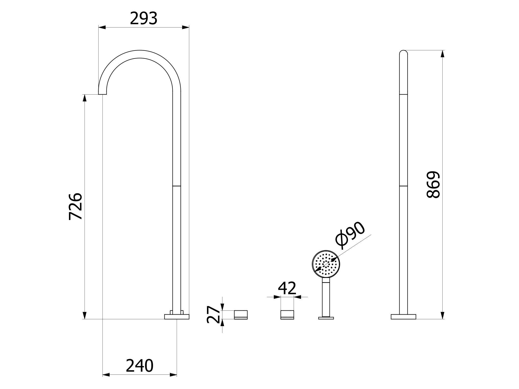 Elio EO700 - Batteria bordo vasca tre fori completa di bocca da erogazione a terra.