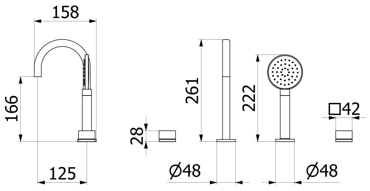 Elio EO396 - Batteria bordo vasca quattro fori con cartuccia progressiva.