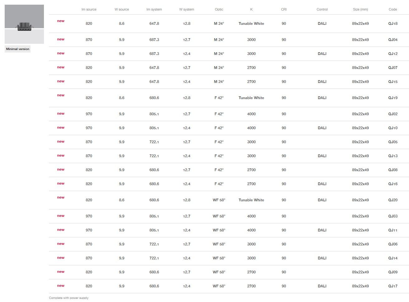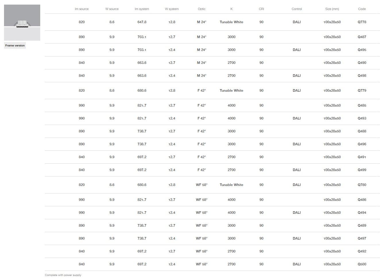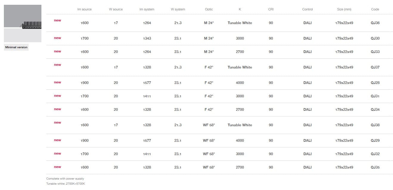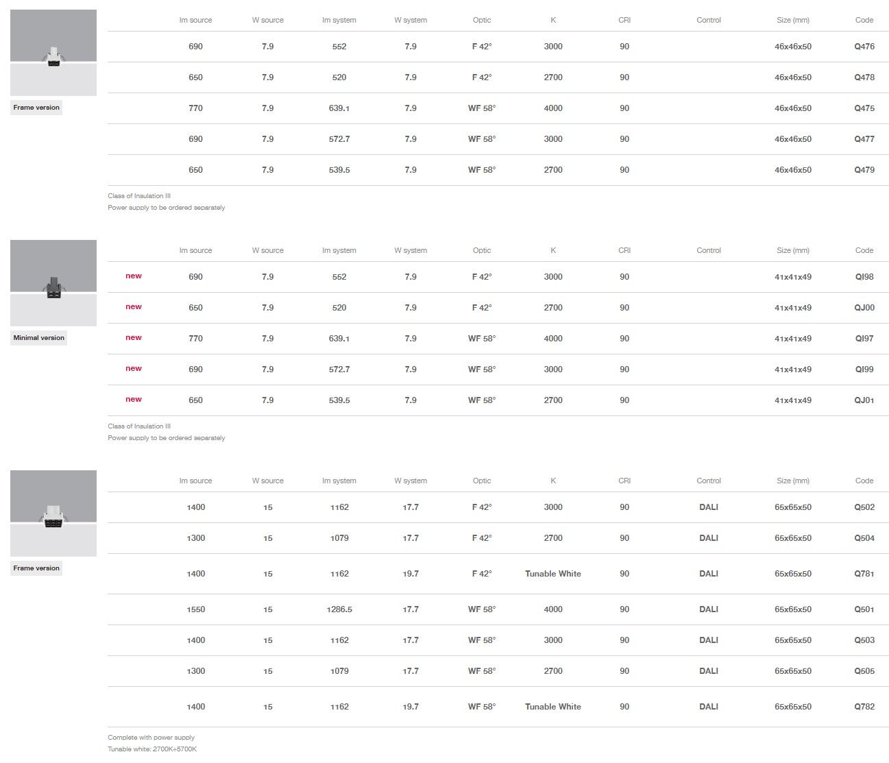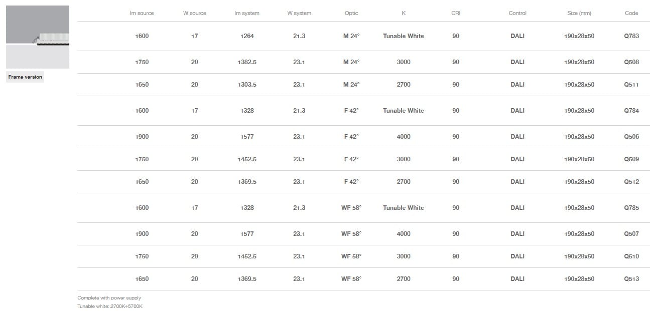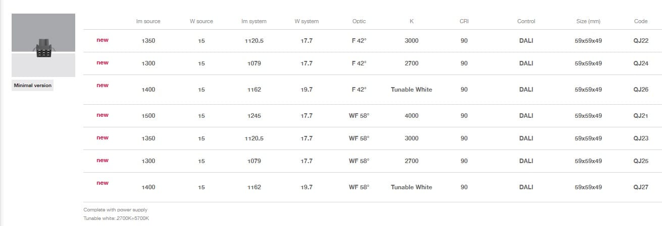 Disponibili versioni Tunable White (2700K ÷ 5700K).