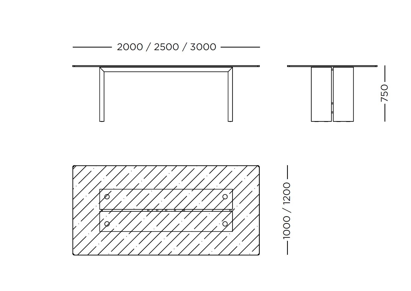 Composto da 2 gambe a ponte unite folding in pannelli di particelle di legno spessore 60 mm impiallacciato in essenza, unite tra loro da distanziali in acciaio inox da 25 mm.