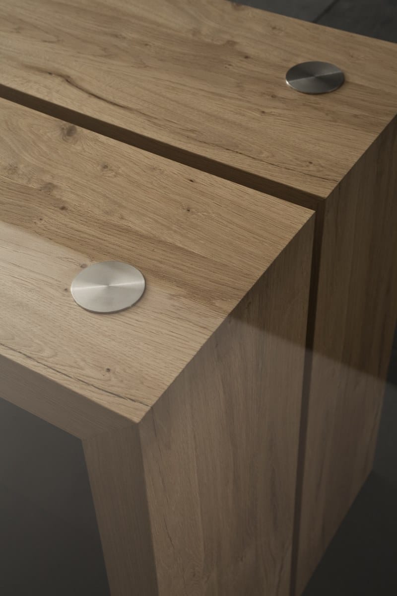 Nella finitura Briccola, i bordi e le parti interne delle gambe sono sempre in Rovere Nodato