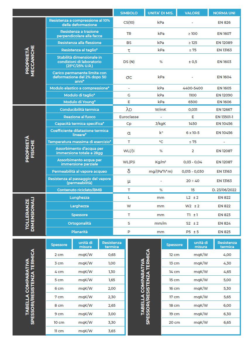 - Conducibilità Termica: W/mK ≥ 0,031
