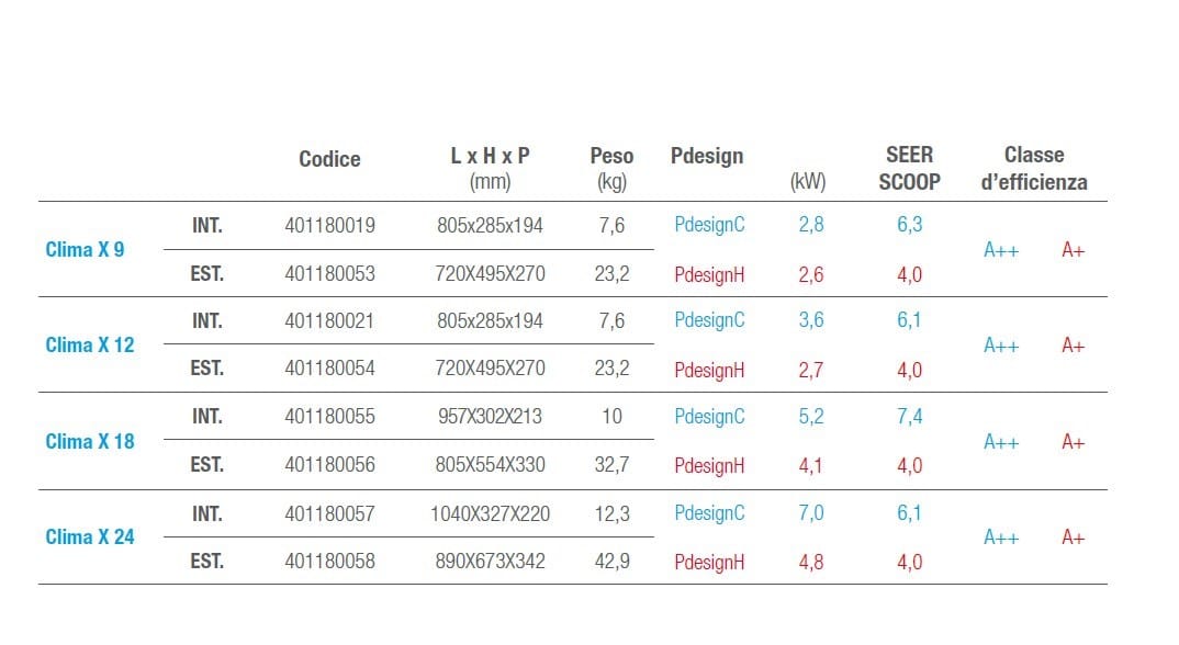 Clima X è una serie di climatizzatori in pompa di calore DC Inverter Mono-Split.