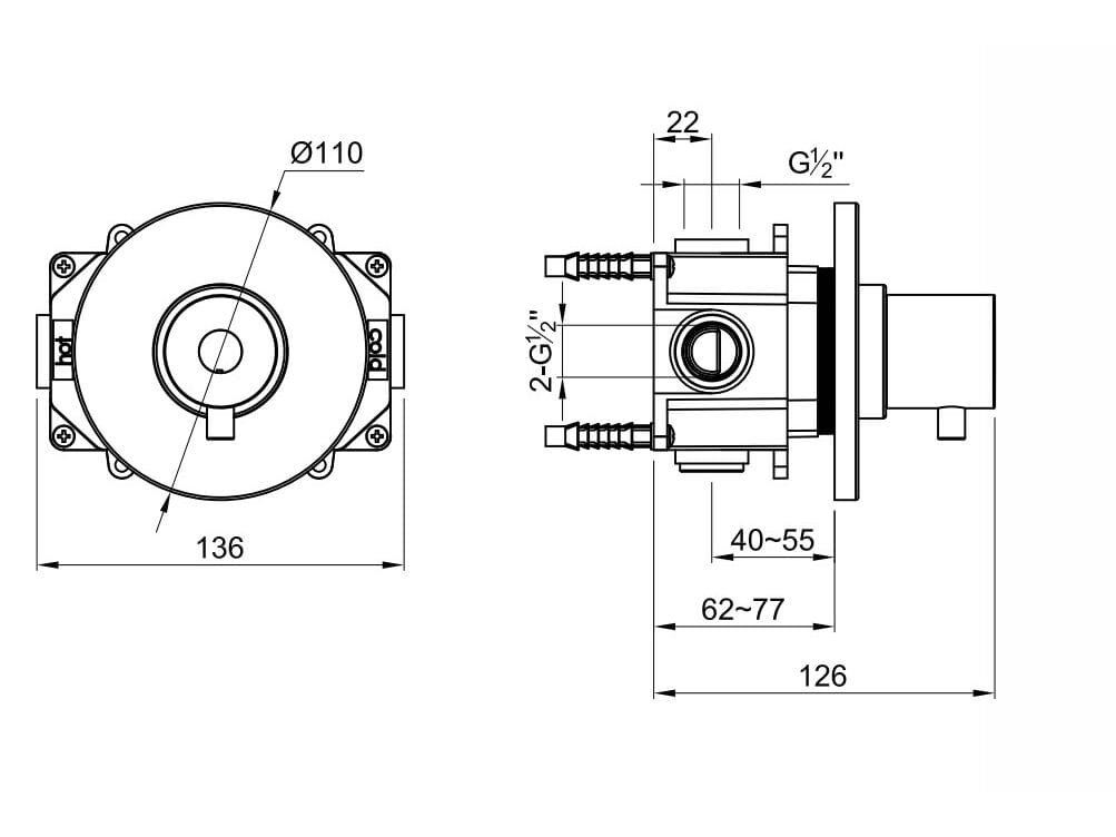 Miscelatore termostatico a parete e corpo nascosto. Disponibile in 5 diverse finiture (spazzolato, nero testurizzato, bronzo rivestito in PVD, oro rivestito in PVD, acciaio scuro rivestito in PVD).