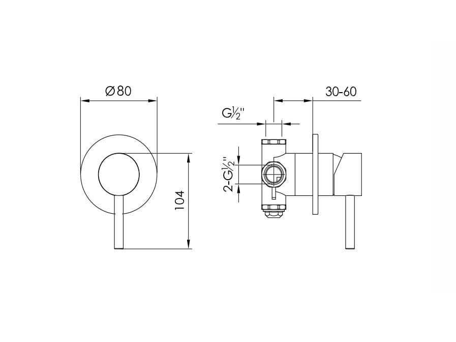 Miscelatore per doccia a parete con corpo nascosto, valvola unidirezionale con rossette più piccole. Disponibile in 5 diverse finiture (spazzolato, nero strutturato, bronzo rivestito in PVD, oro rivestito in PVD, acciaio scuro rivestito in PVD).