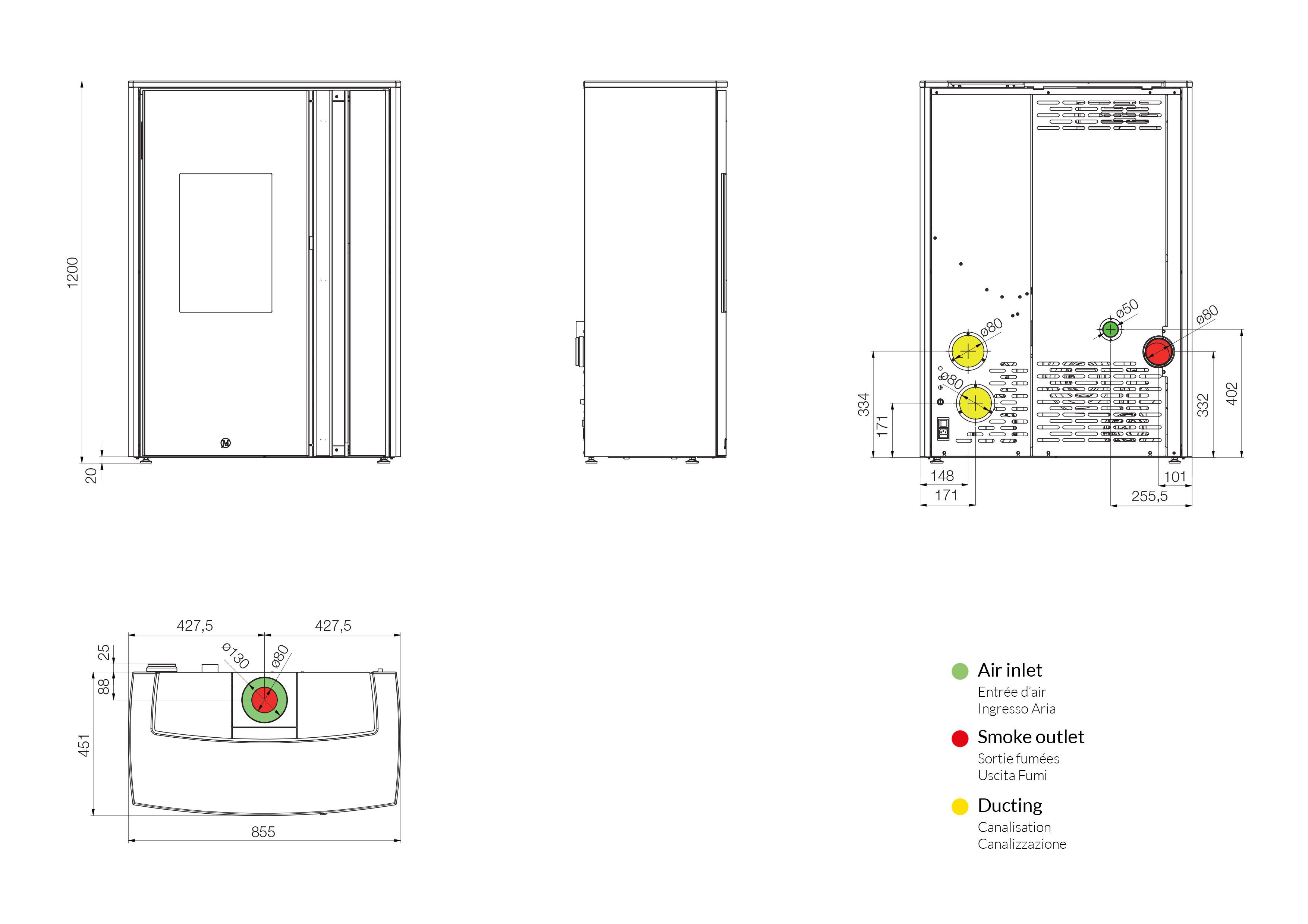Disponibile in 2 potenze, 12 e 14 kW, MELTEMI soddisfa la richiesta di potenza in grandi volumi. Una linea unica e compatta (solo 45 cm di profondità). Pochi e semplici comandi per controllare tutte le funzioni della stufa. MELTEMI presenta frontalmente una griglia verticale dell’aria, regolabile e orientabile. Può essere installata con l’uscita posteriore o con l’uscita superiore semplice o concentrica. Infine MELTEMI può canalizzare l’aria nelle altre stanze, con o senza ventilatore.