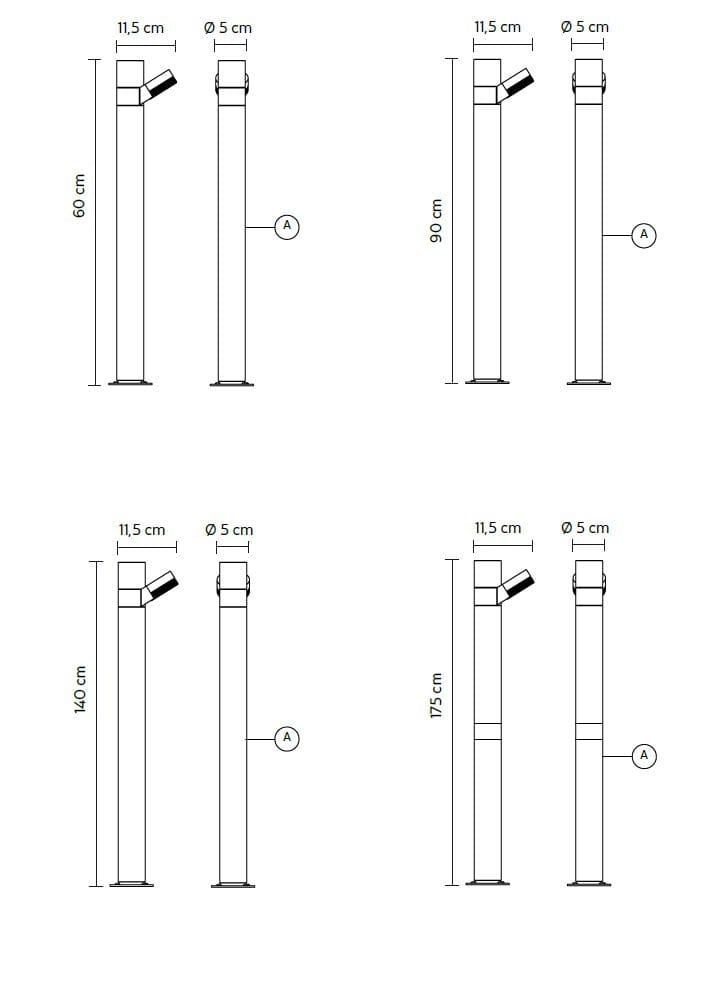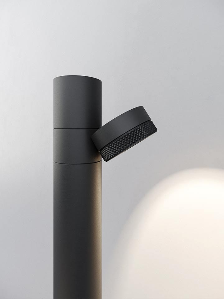 Un sistema architetturale per l’illuminazione outdoor che parla il linguaggio della flessibilità e modularità. Un sistema di paletti per l’architettura di giardini, viali, terrazze e contesti open spaces dall’estetica discreta, capace di mimetizzarsi completamente tra il green del giardino grazie alle dimensioni contenute e la finitura color naturale. Moduli a cilindro in alluminio anodizzato con una splendida finitura mineral brown ospitano - grazie ad un giunto circolare, un faretto, anch’esso in alluminio anodizzato, alloggiante un modulo LED che si può montare (il faretto) direzionato verso l’alto o verso il basso. Nonostante le dimensioni contenute del paletto, è possibile impilare più elementi (anche di lunghezze differenti) per inserire tra loro più faretti e così illuminare più punti con lo stesso elemento verticale, per creare configurazioni funzionali alla propria specifica necessità di illuminazione degli spazi esterni.