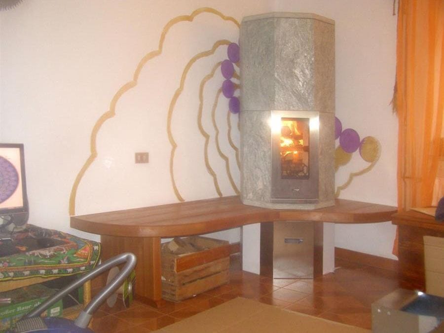 Stufa a legna ad accumulo a prevalente trasmissione del calore per irraggiamento.