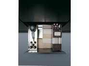 Da sottolineare la possibilità di rivestire ante e frontali in cuoio, disponibile inotto colorazioni (naturale, bianco, nero, melanzana, rosso, warm grey e smoke), oppure specchio.