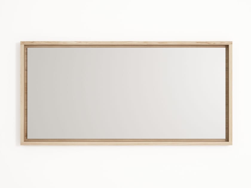 Specchio rettangolare per bagno con cornice in teak FSC della collezione Parker di Karpenter. Montaggio a parete.