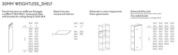 30mm è lo spessore della libreria, appoggiata a terra o sospesa, integrabile con i contenitori del sistema 36e8, per offrire soluzioni di contenimento funzionali e modulari in grado di sfruttare lo spazio al centimetro. Nel fianco si nasconde un sistema di fissaggio a parete brevettato che permette per la prima volta la sospensione di una libreria. L’abbattimento dei vincoli strutturali consente di comporre forme dinamiche ed espressive, adattandosi ad ogni spazio e contesto.