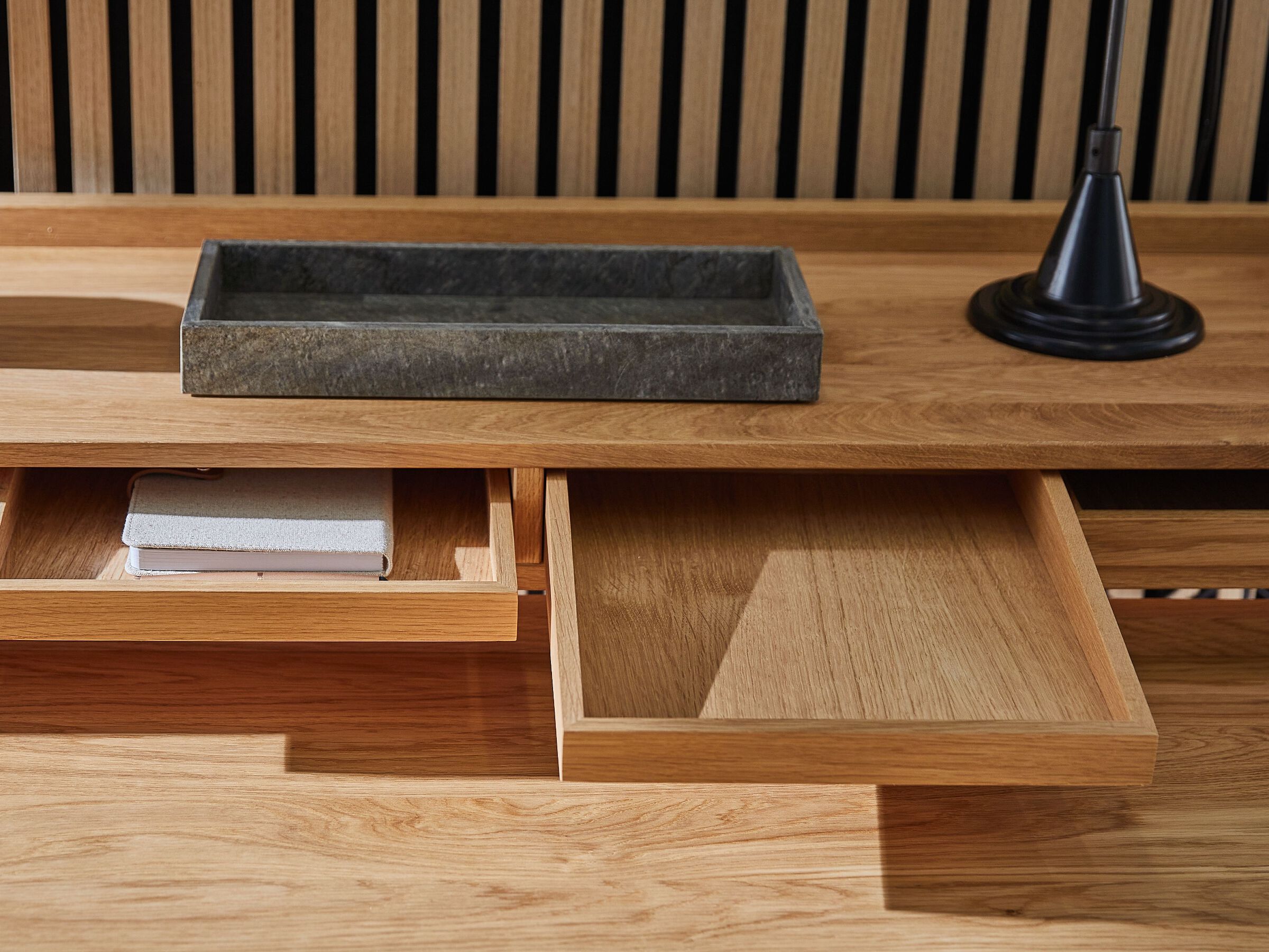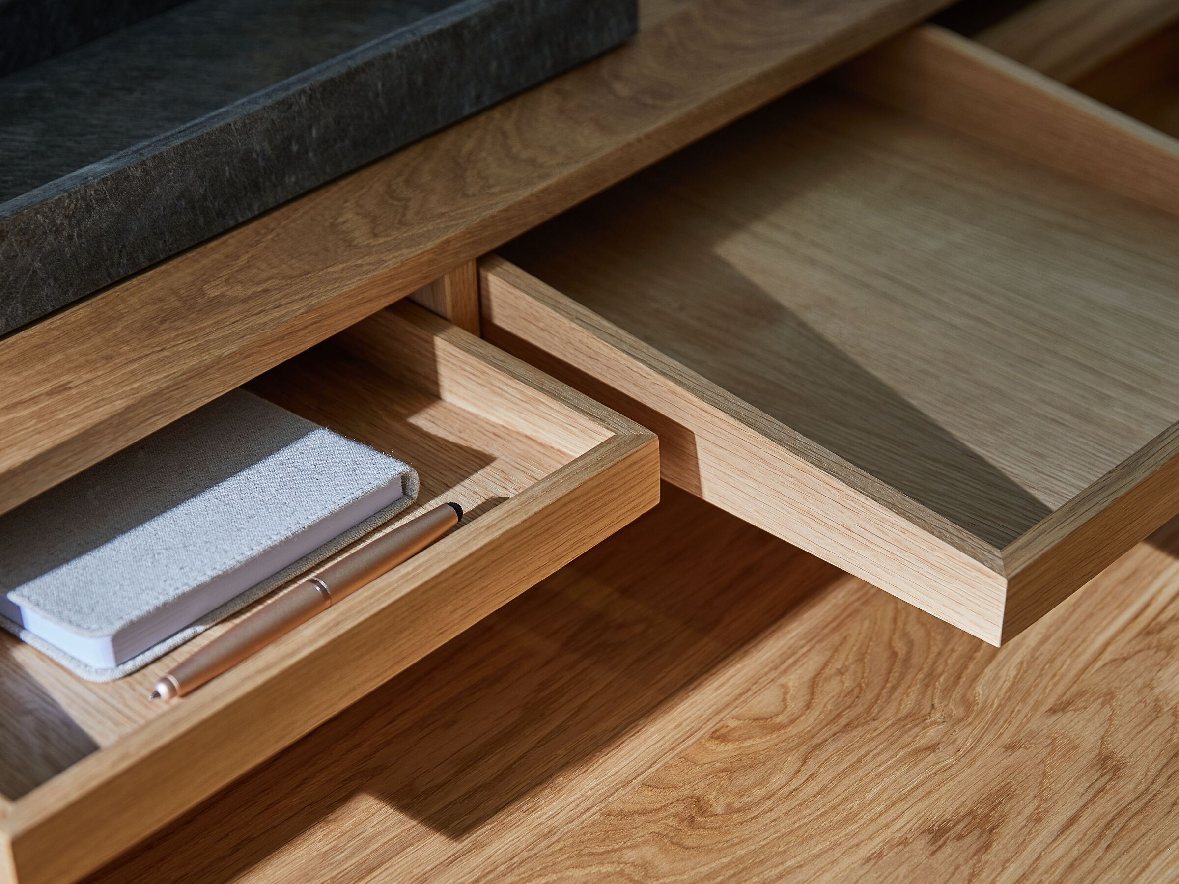 MODESTO è un'elegante scrivania che soddisfa i più alti requisiti in termini di artigianalità. Che si tratti dell'ufficio, dell'ingresso o del salotto, grazie al suo design essenziale, MODESTO è ideale per creare un'atmosfera di lavoro piacevolmente tranquilla in qualsiasi ambiente. Naturalmente, MODESTO è stato concepito tenendo conto di tutti gli aspetti ergonomici. Le superfici di lavoro, di dimensioni generose, offrono una comodità di scrittura ideale. Quattro cassetti garantiscono l'ordine e le rotelle tornite a mano sotto le solide gambe garantiscono la robustezza.
