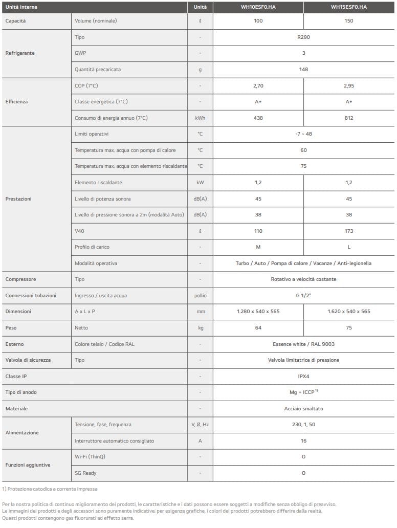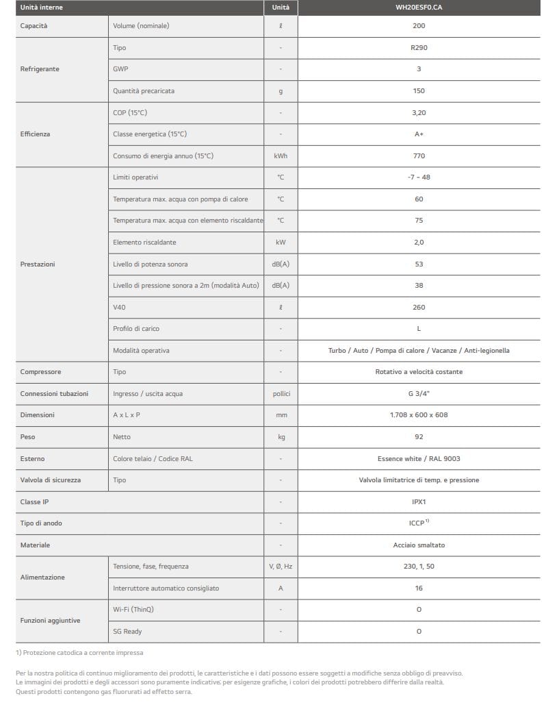 LG Electronics Scaldacqua a pompa di calore R290 Scaldacqua a pompa di calore Linea Sistemi THERMA V