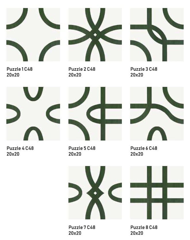 Puzzle Pidulina è una collezione estremamente dinamica che offre infinite combinazioni di assemblaggio, consentendo di creare e personalizzare liberamente il proprio ambiente. Si compone di otto decori, tutti combinabili e mixabili tra loro, per dare vita a soluzioni sempre nuove e originali.