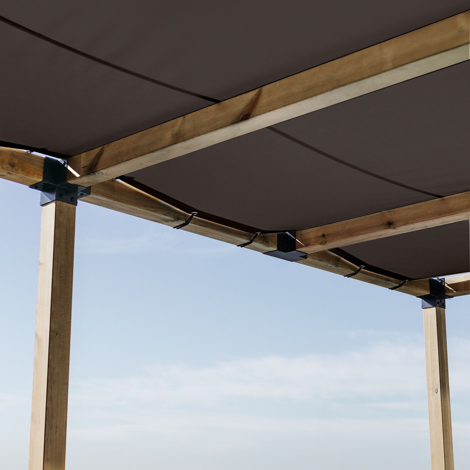 Bugna è il telo ombreggiante occhiellato con doppio orlo perimetrale in filo Sunstop® e occhielli in acciaio 304 che protegge da pioggia, vento e raggi UV.