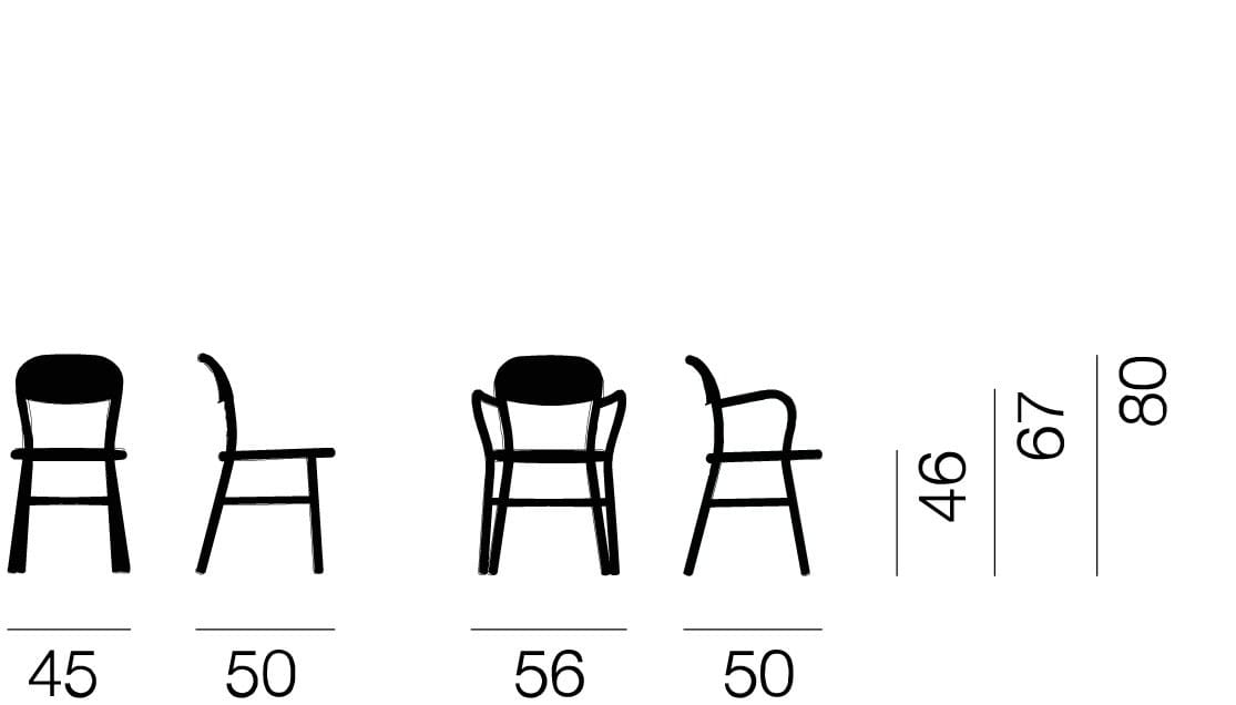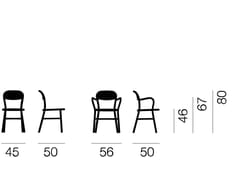 Versione anche con braccioli. Materiali: struttura in tubo di alluminio verniciato poliestere. Sedile e schienale in impiallacciato di faggio.