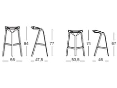 Materiali: gambe in profilato di alluminio anodizzato, verniciato poliestere o lucido. Sedile in pressofusione di alluminio lucido o con trattamento di fluotitanizzazione e verniciato poliestere. Disponibili cuscini in tessuto (Kvadrat “Tempo” o “Gloss 2”) o pelle. Disponibili versioni per esterno. Prodotto ignifugo.