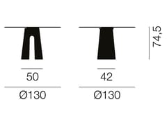 Ancora è un tavolo rotondo con base in cemento e top in MDF impiallacciato rovere.