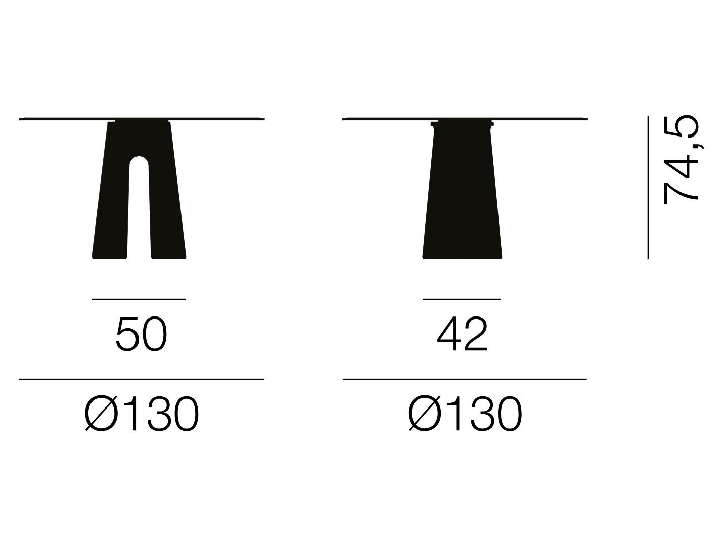 Una forza intrinseca che esplode nell’estetica sinuosa della struttura e disegna prospettive palladiane nello spazio, con decisa semplicità. La collezione, indoor e outdoor, è composta da un tavolo rettangolare (220x90 cm) e uno rotondo (con diametro 130 cm) con la base in cemento e il piano in materiali diversi, a cui si aggiungono due monomaterici tavolini in cemento.